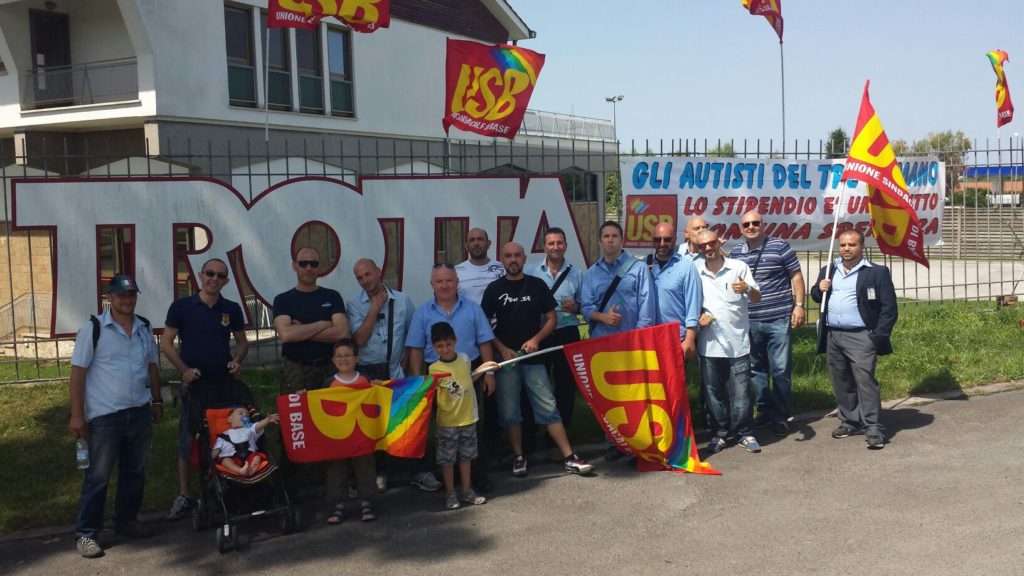 I lavoratori della Società Trotta Bus Services oggi 23/06/2014 scioperano con adesioni del 90% per veder riconosciuto il diritto allo stipendio e sono in presidio davanti al deposito di via castel di leva 116.