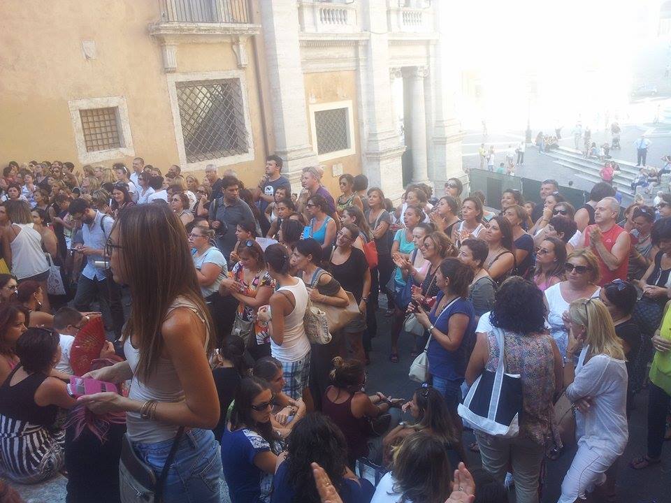 In Campidoglio, nella maestosa sala della Protomoteca si svolge un’incontro, si parla ancora di precarie, nidi, scuole dell’infanzia e un bando. Contemporaneamente nelle nuove sale di Via del Tritone si tiene una commissione congiunta Trasparenza (con la nuova presidente Lavia Mennuni Fdi-An) e Scuola, si parla di precarie, mozione e bando. Nelle stanze del Governo si parlava di Buona Scuola. Insomma come dire che tutti i massimi Palazzi rappresentanti il Potere Politico hanno un solo argomento, il mondo della scuola.