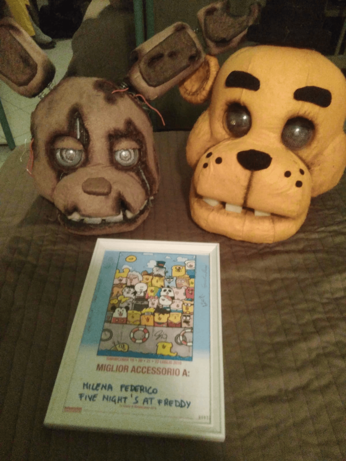 Sono Milena Natalizi amo la sottocultura cosplay tanto da volerne fare la mia professione. Il mio video gioco preferito è five nights at freddy’s e questo è stato anche il motivo per cui ho cominciato a costruire maschere e costumi. Ho frequentato il liceo artistico, ma per questi lavori ho utilizzato soprattutto la mia fantasia.