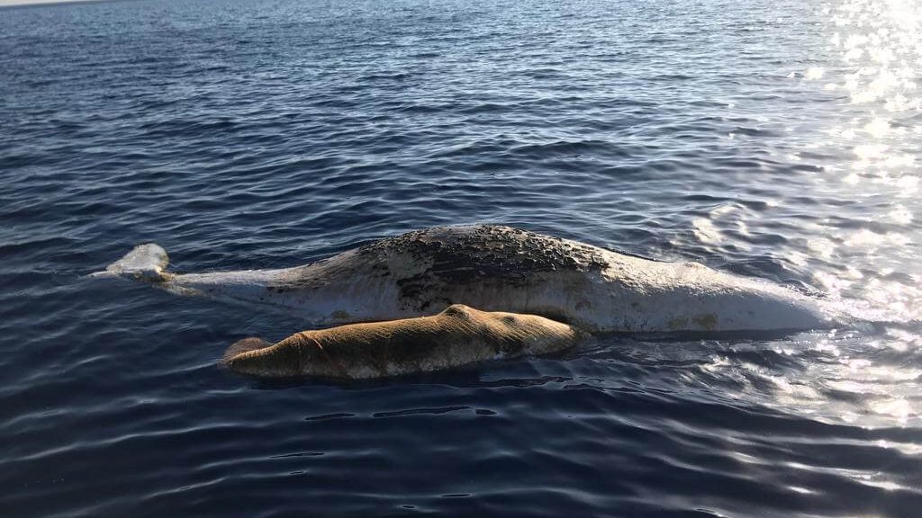 Dai primi rilevamenti è emerso che si tratta di un capodoglio di oltre sei metri di lunghezza. Di un peso difficilmente quantificabile, a causa dell’avanzato stato di decomposizione, basti pensare che della coda è rimasto solo l’osso. I due corpi erano semisommersi e alla deriva. L’ipotesi è che la mamma sia morta per liberare il figlio dalla rete e che alla fine sia rimasta impigliata anche lei. La rete da pesca, lunga circa 2 metri, infatti, era strappata ed in parte impigliata nella bocca della madre che ha cercato di strapparla. Mentre nel sacco era aggrovigliato il corpo del piccolo esemplare.